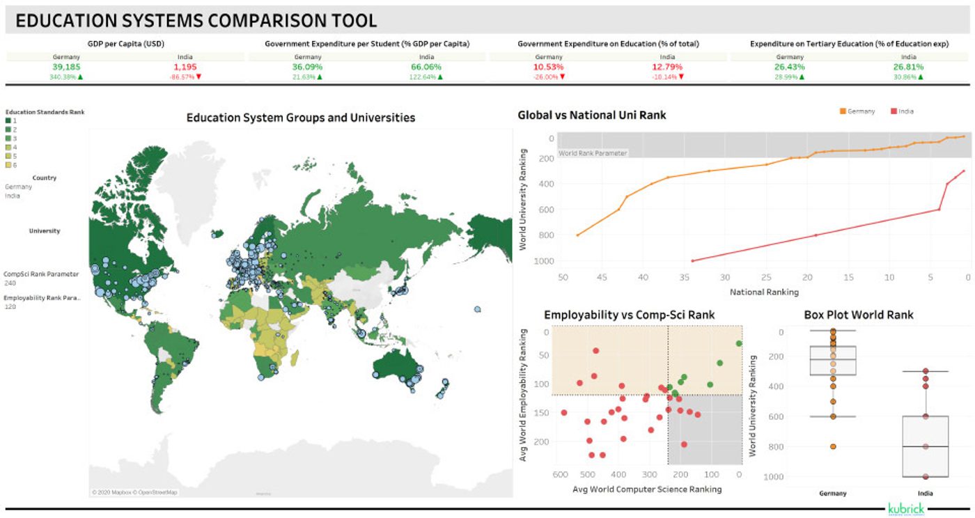 A large barrier for D&I in any organisation is understanding the context of international candidates; comparison between UK universities and their global counterparts can place a glass ceiling upon those without access to the same quality of education. The team curated a dashboard which compares the world’s top 1527 universities to outline the differences in national and global rankings whilst considering each country’s investment in education and its standards. Thus, an applicant from a top university in their home country can be correctly identified as a high-achieving and hardworking candidate, in spite of any lesser global rankings.